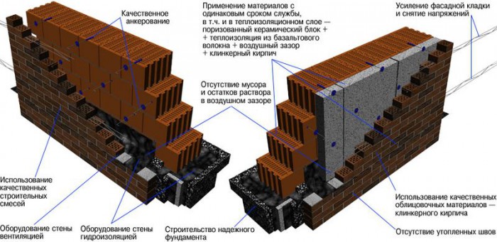 Устройство стены из поризованного кирпича